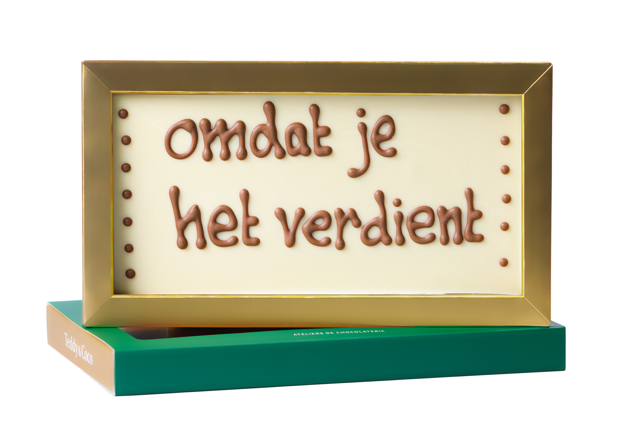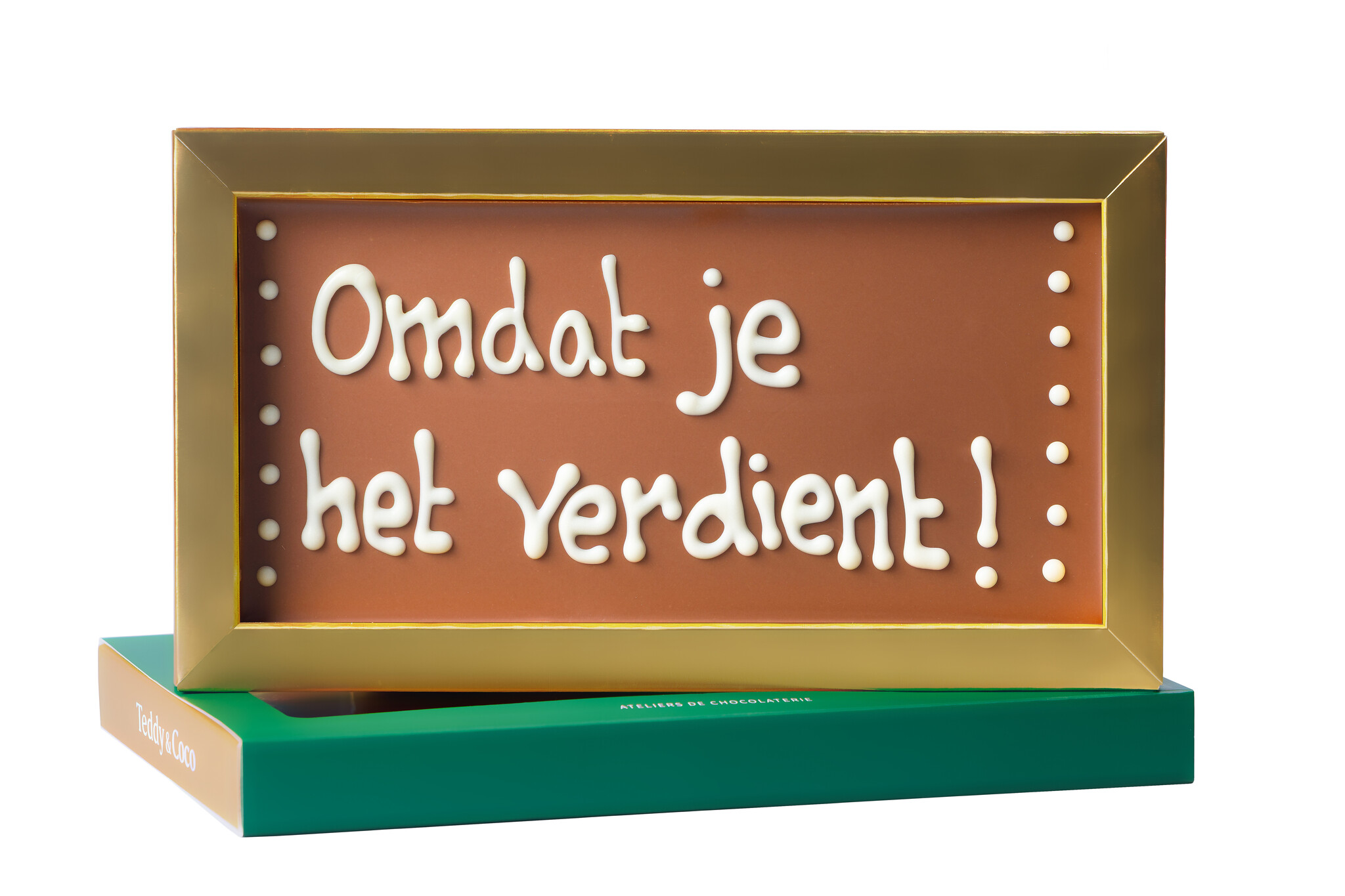 Verras iemand met deze heerlijke chocoladereep met de tekst: Omdat je het verdient Lees meer