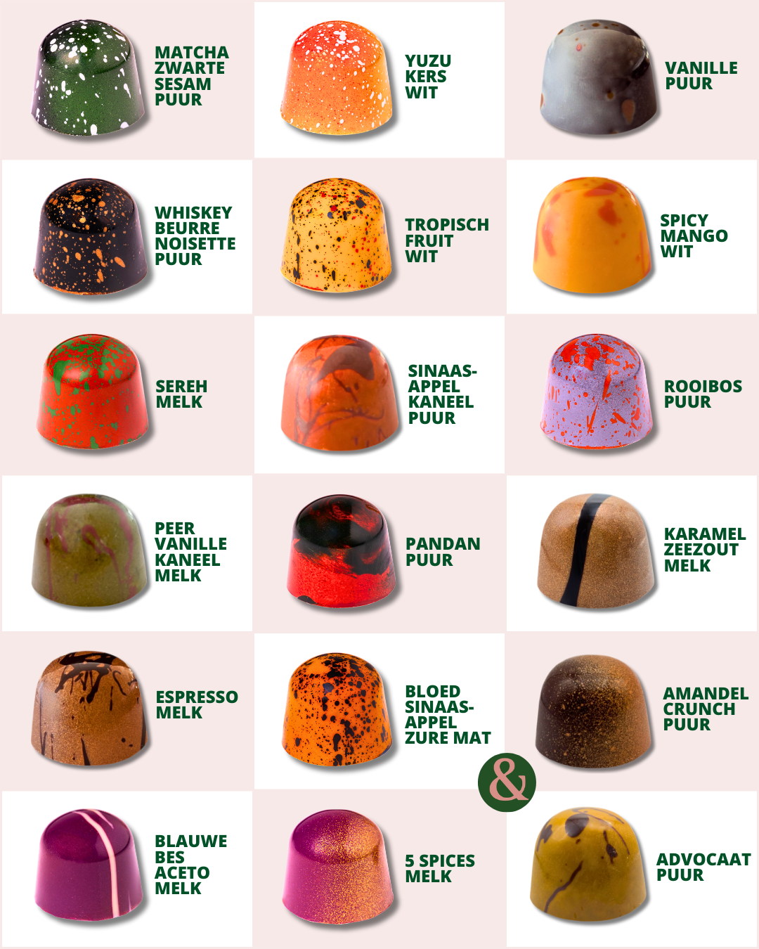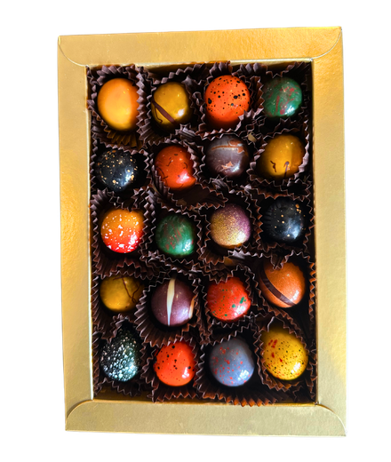 De brievenbus-verpakking is gevuld met een heerlijk assortiment van luxe bonbons. De speciaal geselecteerde chocolade is van hoogwaardige kwaliteit, en dat proef je uiteraard ook. Er worden meerdere soorten bonbons gemaakt; op roombasis, op fruitbasis, glutenarm en alcohol-vrij. Daarnaast is er natuurlijk de keuze uit verschillende soorten chocolade; melk, puur of wit. Wil je kiezen welke soort chocolade/bonbons je in je pakket wil? Dat kan, in het keuzemenu hierboven.